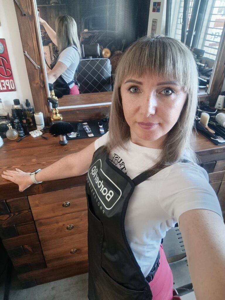 Ahoj, jsem Valentyna, jako kadeřnice jsem vyučená od roku 2017. Moji zákazníci byli hlavně přátelé a rodina, ale v roce 2023 jsem se zaměřila na pánské střihy a dostala příležitost pracovat jako Barberwoman.